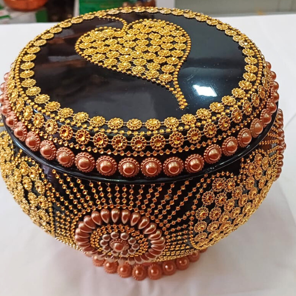 Buddhist Monk Alms Bowl with Bo Leaf Design and Bead work