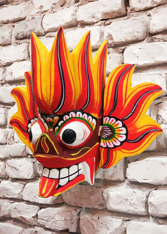 Authentic Sri Lankan Hand Carved Gini Raksha Fire Devil Wooden Mask
